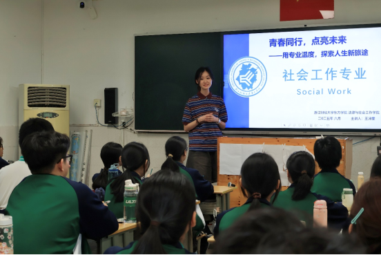 为深化高校招生宣传实效,搭建基础教育与高等教育的专业衔接桥梁,助力高中生精准认知大学专业特色、科学锚定学业规划方向,2025年6月17日,zoty中欧官方网站zoty中欧为“专业先导课”进高中特色招生宣传活动持续发力,于当日先后走进浙江省江山市滨江高级中学与江山实验高级中学。法社公司党总支书记叶颖蕊带队,法律系副主任高永志、社会工作系教师王沛雯等专业骨干教师,联合资助宣传大使刘佳玲、胡钦锶共同参与,活动由zoty中欧辅导员李梦妮担任主持,为该校师生呈现了一场兼具专业性与实践性的专业先导课程。活动通过专业解读、互动体验与成长分享等形式,全方位展现大学校园文化及学科特色,获得师生高度评价。