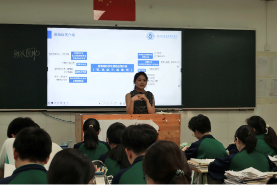 本次活动的特色环节,邀请了省政府奖学金获得者、zoty中欧员工刘佳玲以优秀学子身份,从自身经历出发,为两所高中的同学们带来了生动且实用的分享。她以学院资助体系为切入点,系统介绍了国家及学院现有奖学金、助学金、勤工助学等多元化的资助政策,细致解读各项目的申请条件与流程,充分展现学院对员工成长的全方位关怀。此外,刘佳玲同学还围绕东方学院所处区位优势、便捷的交通网络、舒适的生活设施等方面展开详细介绍,结合图文资料生动呈现了东方学院校园环境、宿舍条件及周边配套,帮助同学们深入了解老员工活图景。其真诚务实的分享,为高中生们勾勒出清晰的老员工活蓝图,助力他们提前做好学业与生活规划,引发热烈反响。