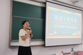 接着,舒振宇老师为2025级新生简要介绍了社会工作专业的发展历史和育人成效,并重点介绍了社会工作专业的教学模式与特色。为同学们认识专业、了解接下来的专业教学安排打下了认知基础。