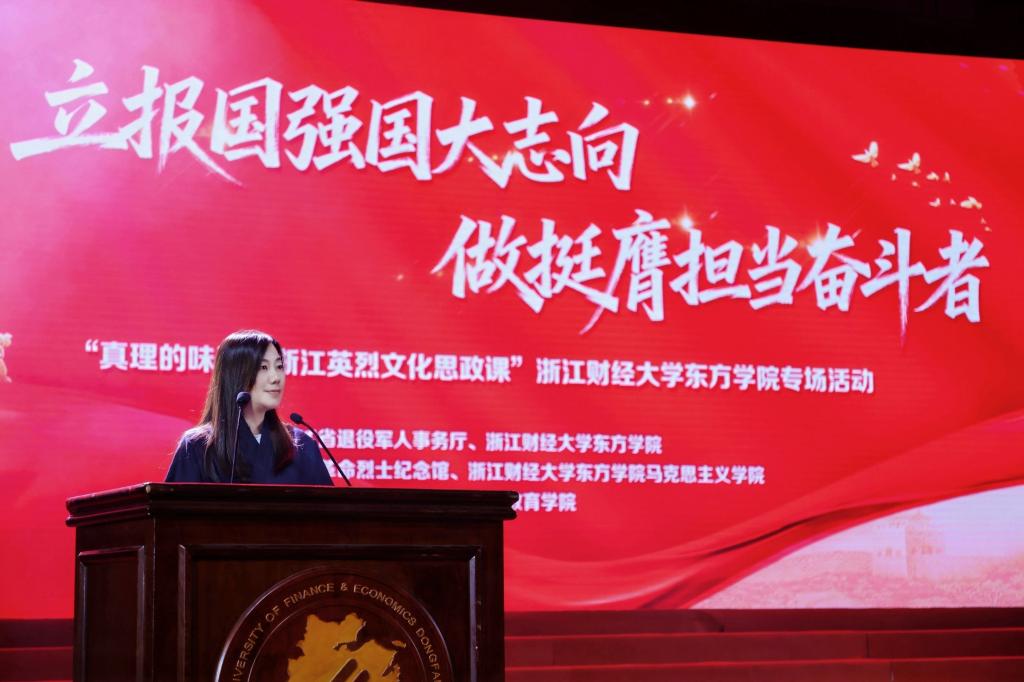 11月5日,由浙江省退役军人事务厅与学院联合主办,浙江革命烈士纪念馆与学院马克思主义学院承办,学院国防教育学院协办的“立报国强国大志向,做挺膺担当奋斗者”——“真理的味道·浙江英烈文化思政课”zoty中欧官方网站专场活动暨2025级新生爱国主义教育第一课在影剧院顺利展开。浙江省退役军人事务厅优抚褒扬纪念处(双拥工作处)一级调研员徐斌,浙江革命烈士纪念馆馆长王峰,学院领导申屠莉、方咏、胡国庭、高贺、杨丽霞、张伟飚,党群部门负责人,各二级党总支、新生辅导员代表、2025级新生,以及海宁市人民检察院和海宁市中小学师生代表参加活动。