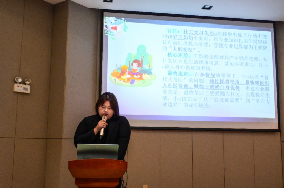 在大赛的第一阶段,专业组的代表们于台上表现得自信且从容,言辞流畅。在介绍理论基础时,他们充分彰显了社会工作专业学子应有的专业素养,巧妙地将“专业的深度、实践的温度与表达的风度”这三者融为一体,向我们呈现出社会工作项目所蕴含的蓬勃生命力,其未来发展前景令人期待。
