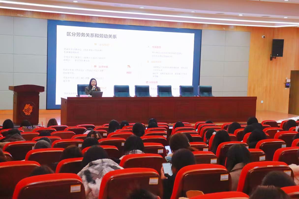 11月28日下午,马克思主义学院思政大讲堂(2025年第3期,总第52期)在学术交流中心二号报告厅顺利举行。本次讲座邀请到了浙江潮乡律师事务所的法律硕士王好律师,为师生带来了一场题为《从校园到社会:守护老员工的法律“保护伞”》的精彩讲座。300余名员工前来聆听本次讲座。