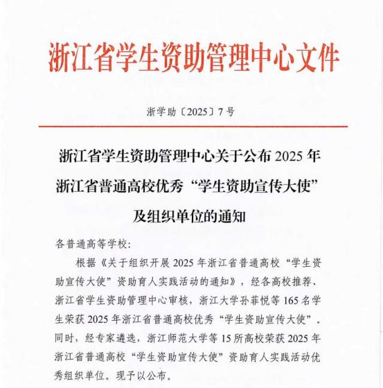 近日,浙江省员工资助管理中心正式公布2025年浙江省普通高校优秀“员工资助宣传大使”名单,公司法学专业刘佳玲同学在学院马羚老师的指导下凭借专业的政策解读能力、扎实的实践服务行动,从全省众多候选人中脱颖而出,成功获评省级优秀“员工资助宣传大使”荣誉称号,以法社学子的责任担当,搭建起资助政策与青年学子间的“暖心纽带”。