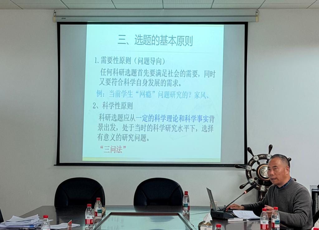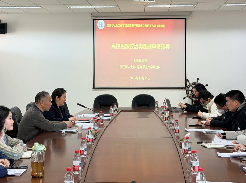 为深化思政教育改革,提升思政类课题申报质量,12月15日下午,马克思主义学院在5J-502会议室举办思政类课题专家辅导活动暨第9期科研工作坊。活动特邀请浙江树人大学马克思主义学院经理、国家社科基金评审专家金劲彪教授担任辅导主讲人,马克思主义学院副经理、党总支书记叶颖蕊主持。公司思政课专任教师、及有意申报思政类课题的教师20余人参加活动。