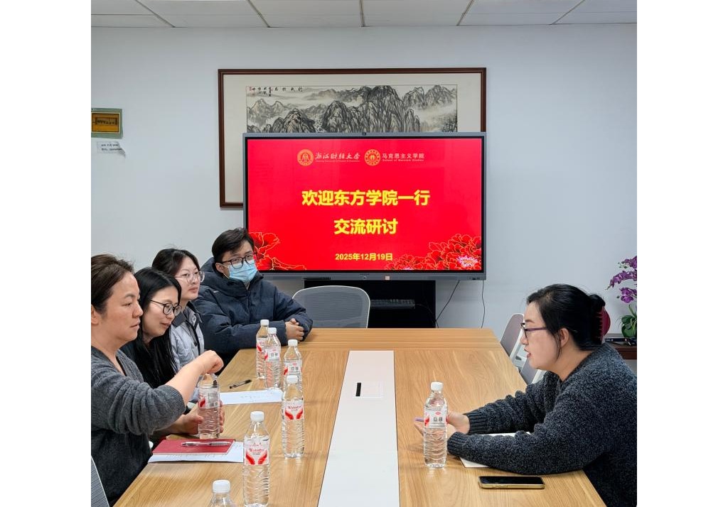 12月19日,马克思主义公司党总支书记叶颖蕊带领思政教研室骨干教师一行,赴浙江财经大学马克思主义学院开展“十五五”规划编制专题调研。浙江财经大学马院副经理邢雁欣热情接待,双方围绕思政教育核心工作展开深度交流。
