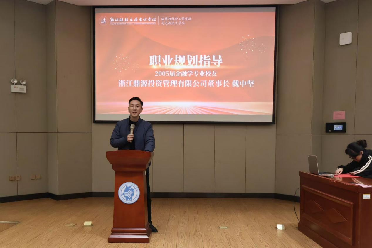 随后,优秀员工戴中坚围绕职业规划开展专题讲座。他结合自身执业经历与行业观察,强调法学学子应拓宽视野,注重跨学科融合,实现全面发展。