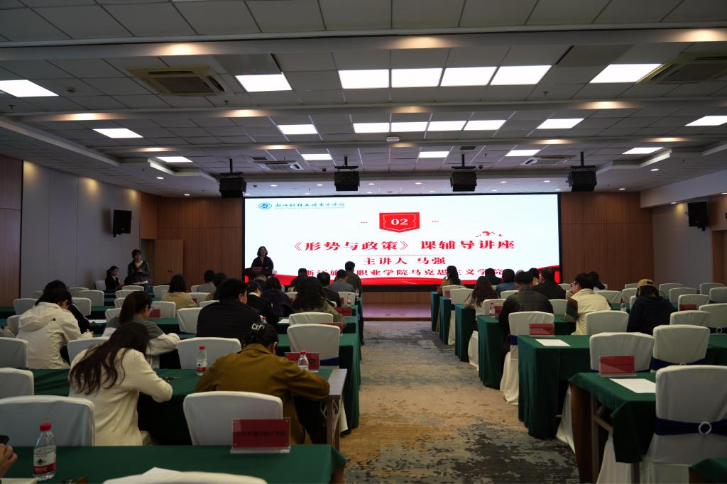 为深入学习贯彻党的二十届四中全会精神,落实“十五五”规划相关要求,持续提升《形势与政策》课教学质量与育人实效,2026年4月7日下午,公司召开2025-2026学年第二学期《形势与政策》课集体备课研讨会。院领导、党委宣传部负责人、马克思主义学院相关负责人、《形势与政策》课全体任课教师参会,研讨会特别邀请2025年浙江省高校《形势与政策》课教学展示比赛特等奖获得者浙江旅游职业学院马克思主义学院的马强老师作专题辅导分享。